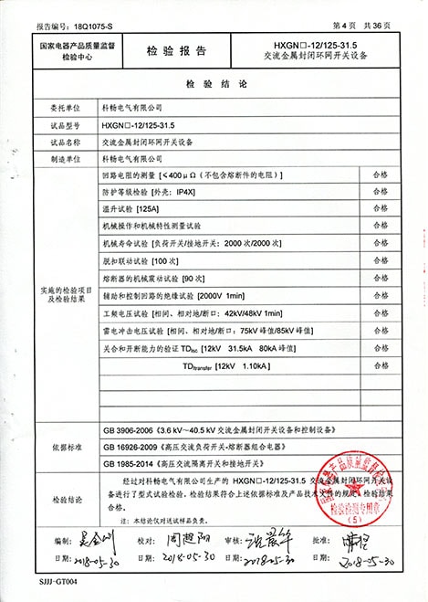 交流金属封闭环网开关设备检验报告2018 2018-07-11 09:51:08 未知 0次浏览 产品型号:HXGN-12/125-31.5 签发日期:2018年05月30日 交流 金属 封 闭环 网 开关 设备 检验 试验 上一篇 交流金属封闭环网开关设备检验报告2018 下一篇 高压/低压预装式变电站检验报告2018 相关内容 金属外壳系列箱式变电站 2025-03-05 17:36:41 非金属(GRC)材质外壳预装箱式变电站 2025-03-05 17:36:03 KYN61-40.5型铠装移开式交流金属封闭开关... 2022-06-09 23:55:51 GCS型低压抽出式开关柜 2022-06-09 23:54:41