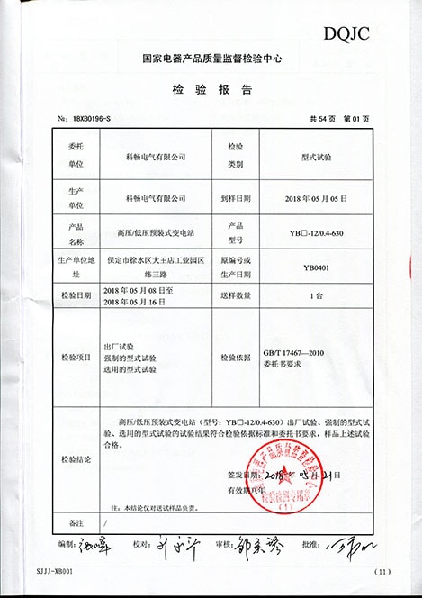 高压/低压预装式变电站检验报告2018 2018-07-11 09:54:01 未知 0次浏览 产品型号:YB-12/0.4-630 签发日期:2018年05月21日 高压 低压 预装 式 变电站 检验 实验 报告 上一篇 交流金属封闭环网开关设备检验报告2018 下一篇 高/低压预装箱式变电站检验报告2018 相关内容 华式变电站 2025-03-05 17:38:05 金属外壳系列箱式变电站 2025-03-05 17:36:41 非金属(GRC)材质外壳预装箱式变电站 2025-03-05 17:36:03 景观外壳预装式箱式变电站 2025-03-05 17:34:27