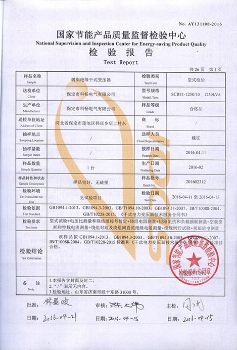 树脂绝缘干式变压器检验报告2016 2018-07-11 10:31:36 未知 0次浏览 产品型号:SCB11-1250/10 1250KVA 签发日期:2016年04月21日 树脂 绝缘 干式 变压器 检验 报告 上一篇 树脂绝缘干式变压器试验合格证书2016 下一篇 智能高频开关直流电源屏产品型号使用证书2015 相关内容 碳足迹盘查报告-2023年 2024-05-13 16:44:55 碳足迹盘查报告-2021年 2024-05-13 16:43:25 碳足迹盘查报告 -2022年 2024-05-13 16:41:39 2023年社会责任报告 2024-05-13 16:40:24