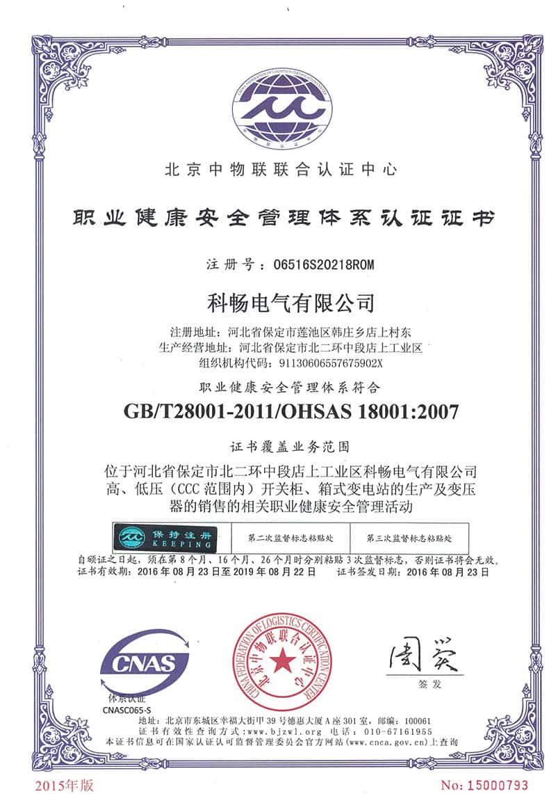 职业健康安全管理体系认证证书 2018-05-09 18:16:55 未知 0次浏览 职业 健康 安全管理 体系认证 证书 上一篇 certlfication of occupational health and safety management 下一篇 certlfication of environmental management system 相关内容 低压抽出式开关柜中国国家强制性产品认证证书 2018-07-11 11:02:29 低压配电箱(配电版)认证书2018 2018-07-11 11:00:41 低压电器成套开关设备认证书2018 2018-07-11 10:59:22 低压抽出式开关柜(低压成套开关设备)认证书 2018-07-11 10:56:37